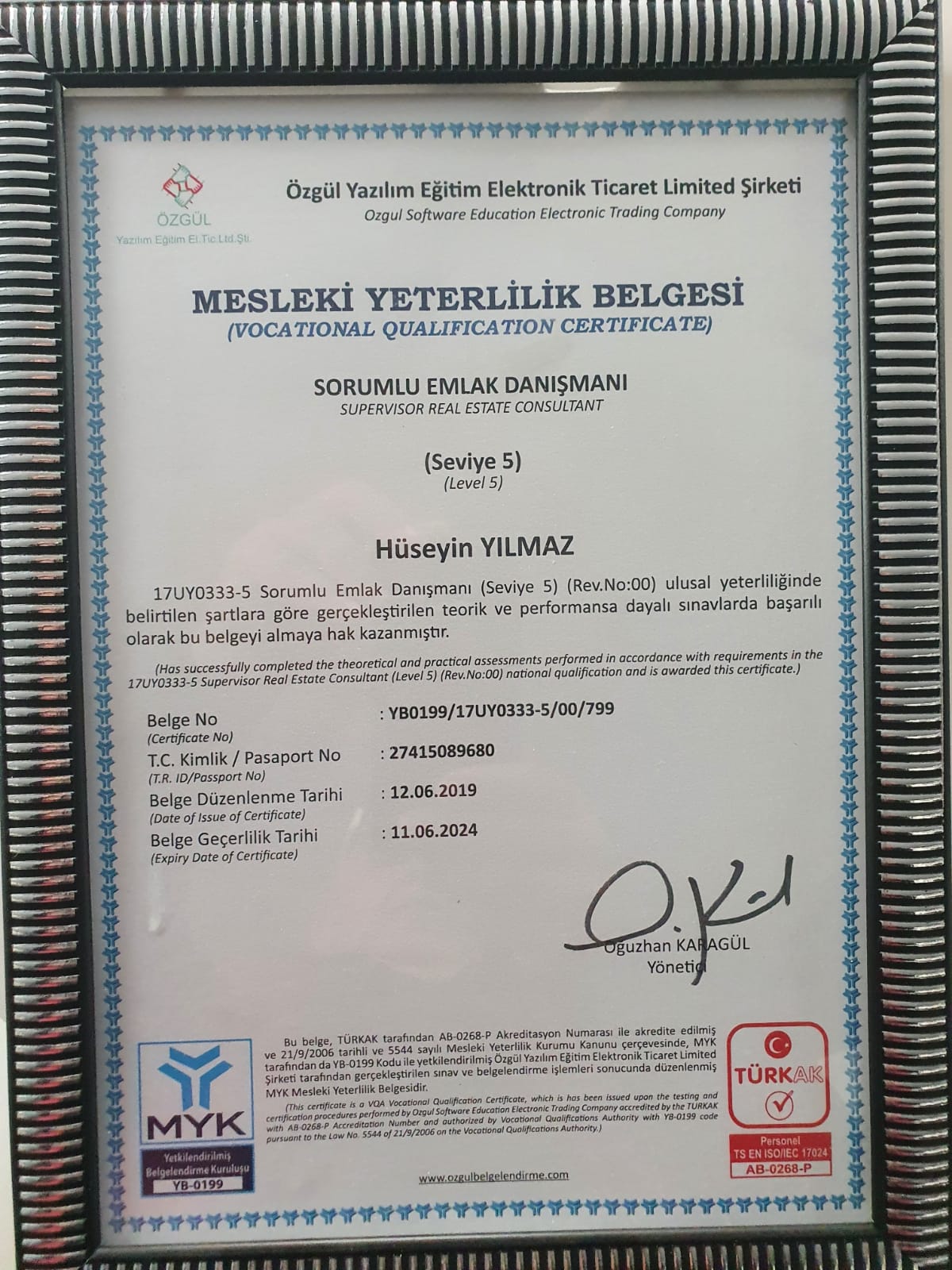 Alanya Eiendom (Real Estate), Todistus No: YB0199/17UY0333-5/00/799